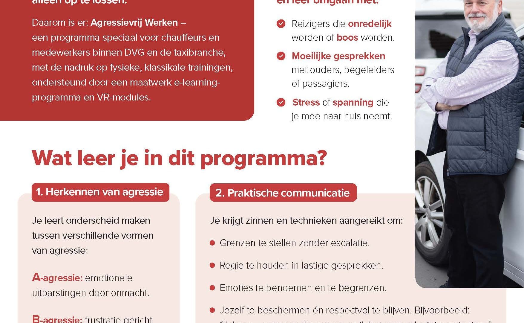 De leaflets voor chauffeurs, teamleiders en planners liggen klaar – fris, uitnodigend en herkenbaar. Elk ontwerp ademt waar Trots op Taxi voor staat: vakmanschap, groei, werkplezier en verbinding. Van agressievrij werken tot vitaal vakmanschap, van werkgeluk tot krachtig leiderschap – de thema’s komen tot leven in taal en beeld.